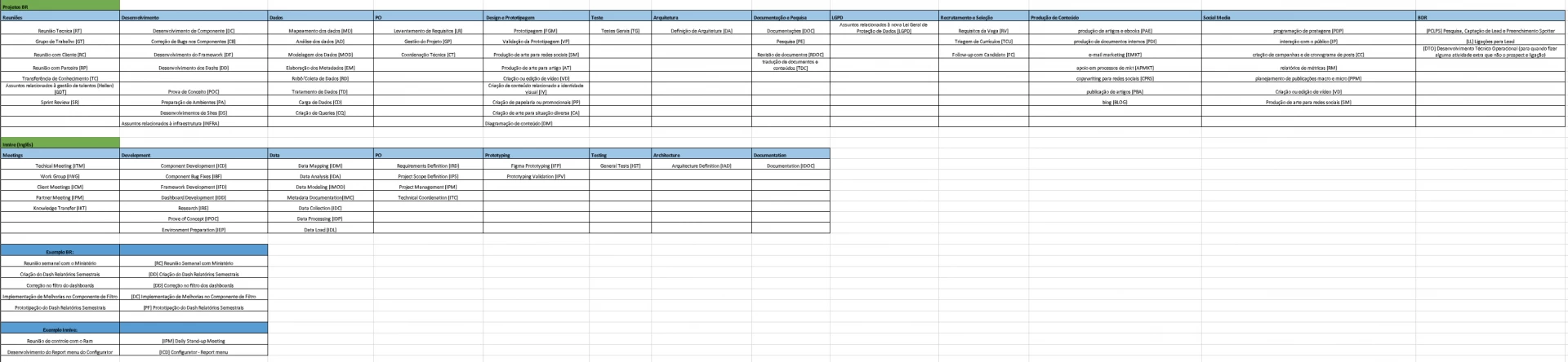 Vale ressaltar que atividades da Innive devem ser registrada na língua Inglesa no clockify, logo foi criada uma tabela com as siglas em inglês que devem ser seguidas.
